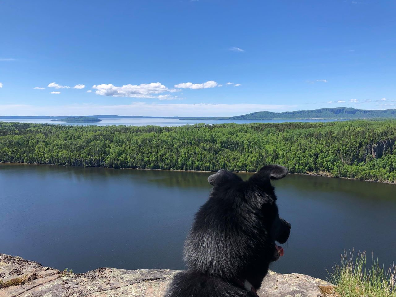 The hike at Ruby Lake in Nipigon, ON is a hidden treasure, known by locals for its sweeping, picturesque views overlooking both Ruby Lake and Nipigon Bay. Mikayla Klassen had heard of this hike from her friend Erika Puiras, and on Saturday, June 13th, 2020, they decided to make the drive from Thunder Bay, ON, with Mikayla’s dog Marley in tow. Marley, the spirited black Lab/Samoyed cross with boundless enthusiasm, was also a keen hiking companion. She would often disappear off the sides of trails to roam the bush but would always return shortly to check in on her people. Even when out of sight, Marley’s whereabouts could always be ascertained by the constant jingling of a red bear bell tied to her collar. As they started out on the hike that fateful morning, neither Mikayla or Erika could know just how useful the bear bell would be in helping to save Marley’s life later that day.